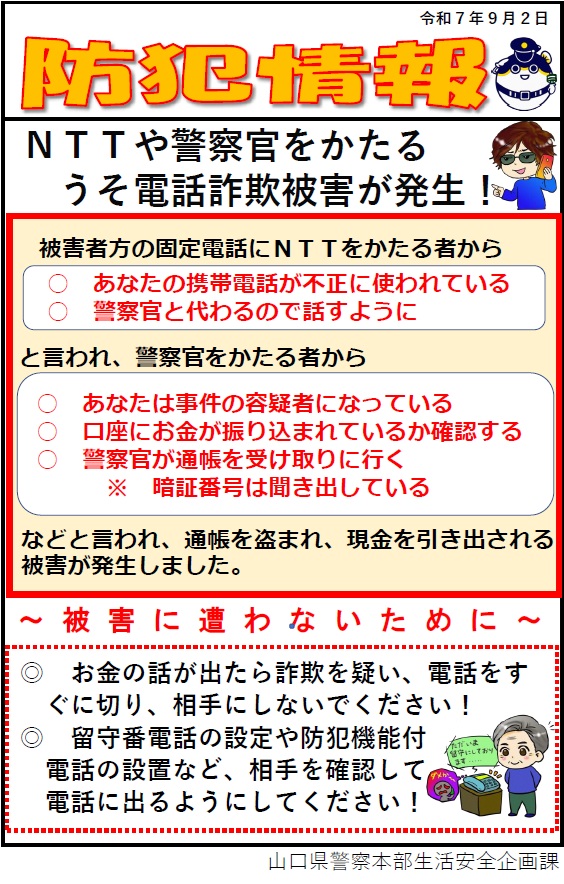 NTT以外にも市役所職員・警察官などを騙ることもあるそうです