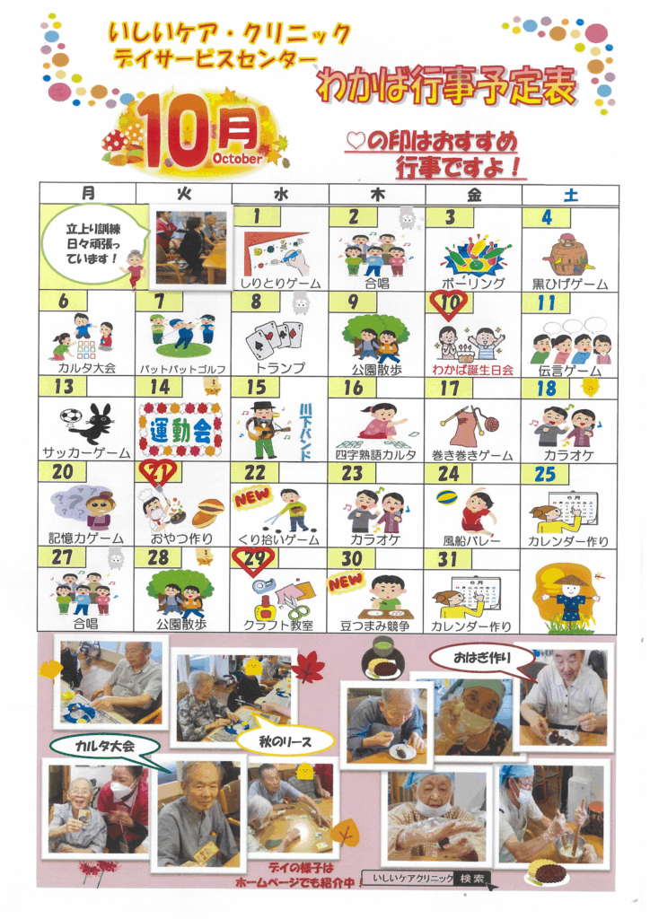 さてさて、少し遅れましたがわかばの今月の行事予定はこんな感じになっています👍💖