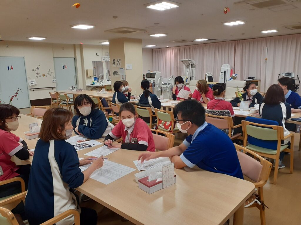 介護研究検討会のメンバーが4月から取り組み、何度も話し合って作成した資料を基に発表します。