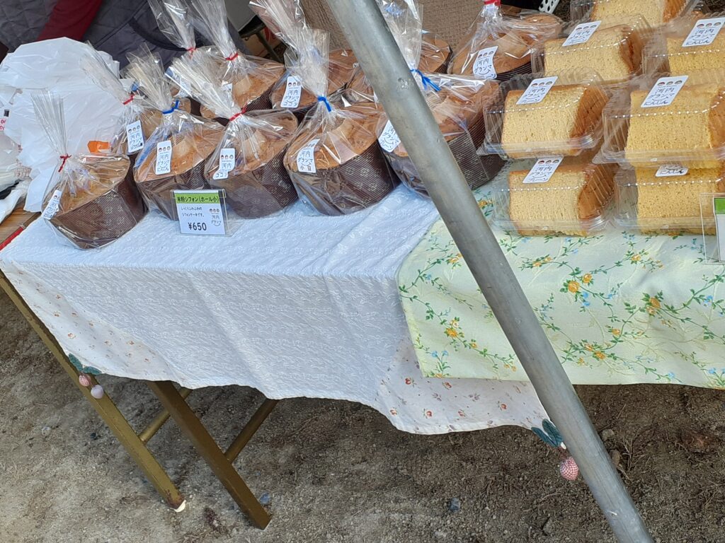 野菜の他、ケーキ・よもぎ餅・花の苗など色々な物が販売されていました。