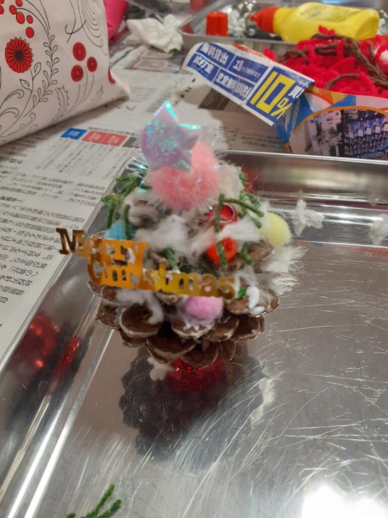 最後に、出来上がったクリスマスツリーを手に記念撮影📸.0