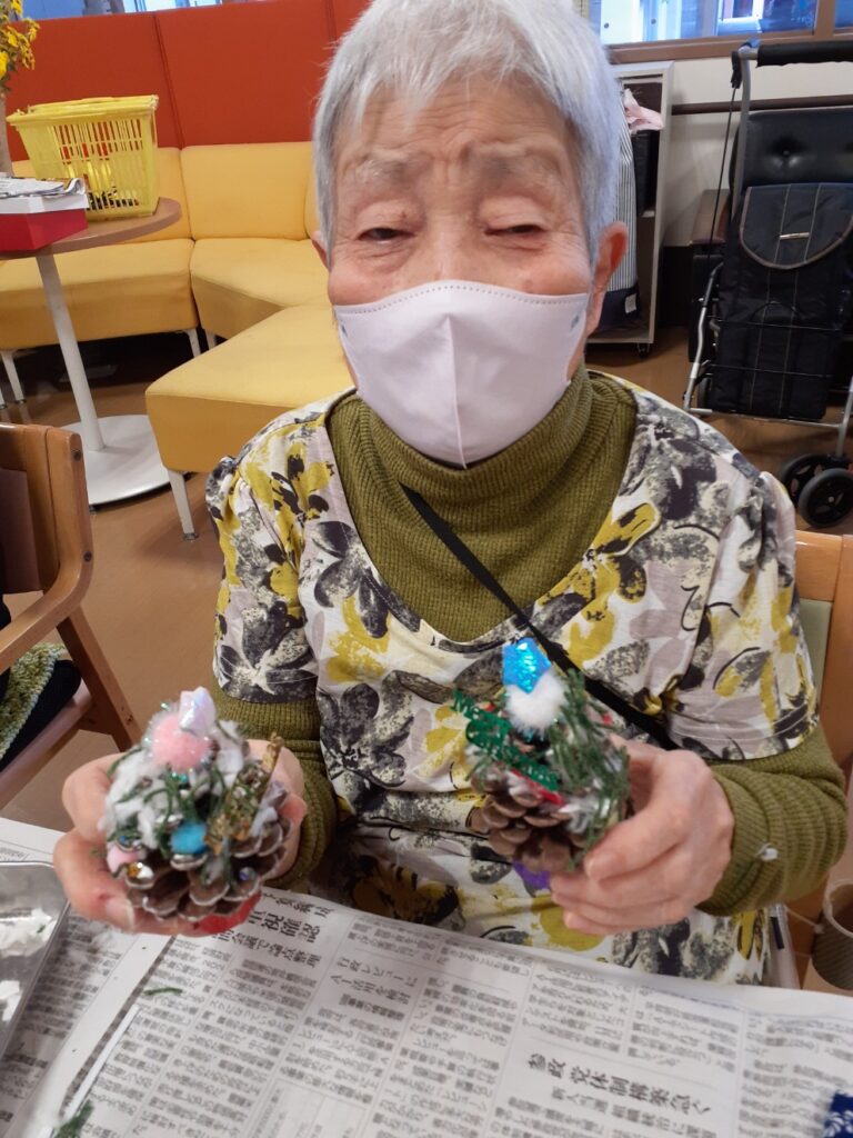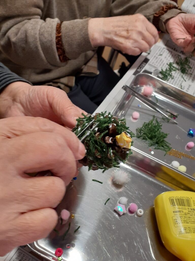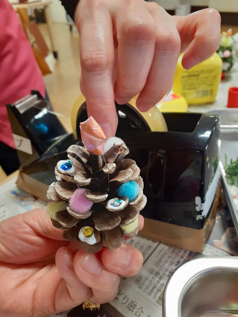 と言う事で、今月のわくわく倶楽部では松ぼっくりでクリスマスツリーをクラフトしました。