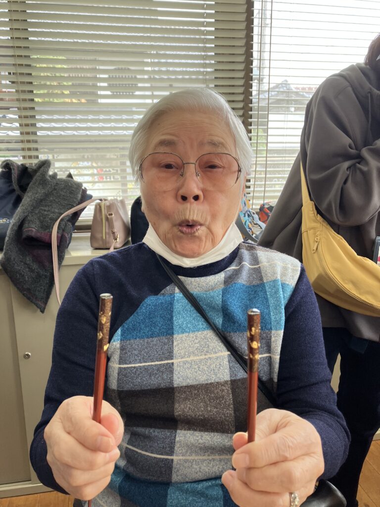 出来たお箸を手に、はい!チーズ✌️
