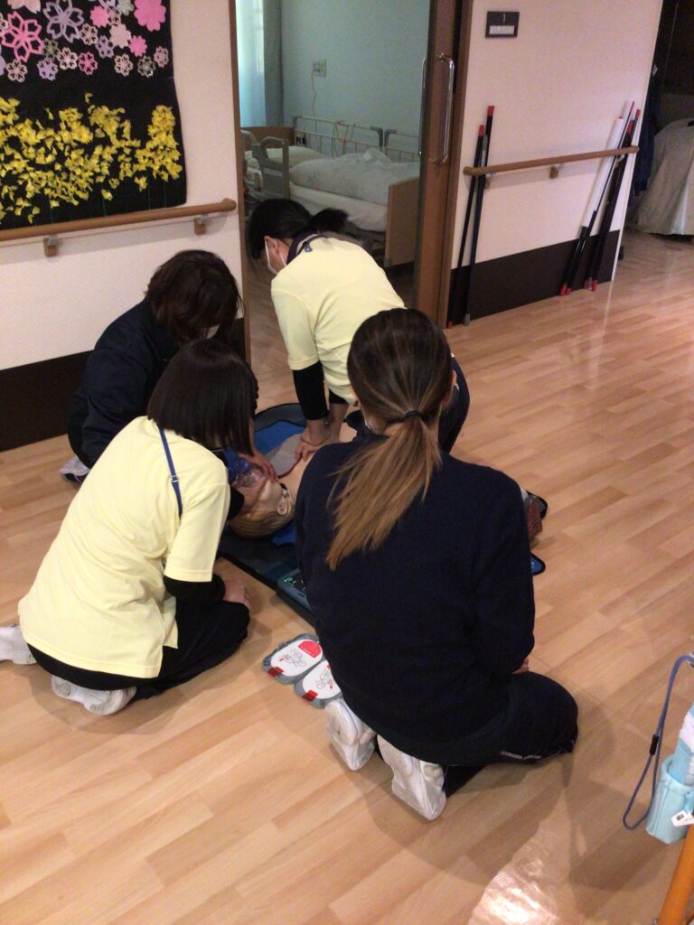 そのうちの一つ「心肺蘇生」について研修を行い、今回は、一連の流れを通して行いました!
