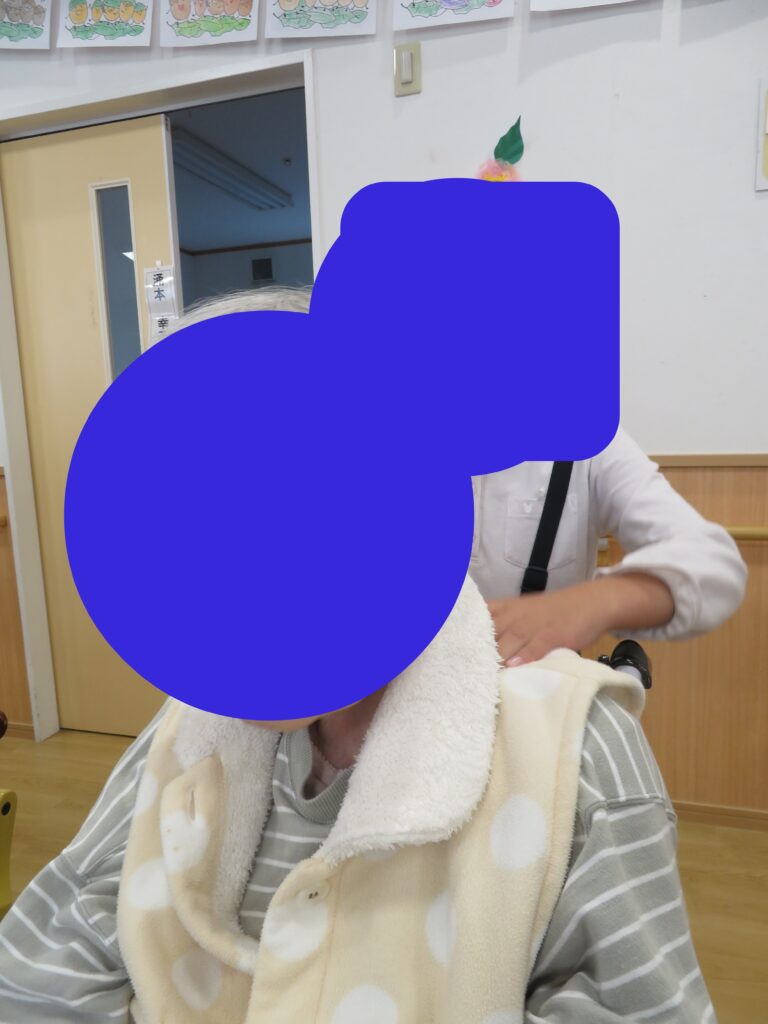 肩をたたいていただいて、ご利用者さん喜んでおられました。