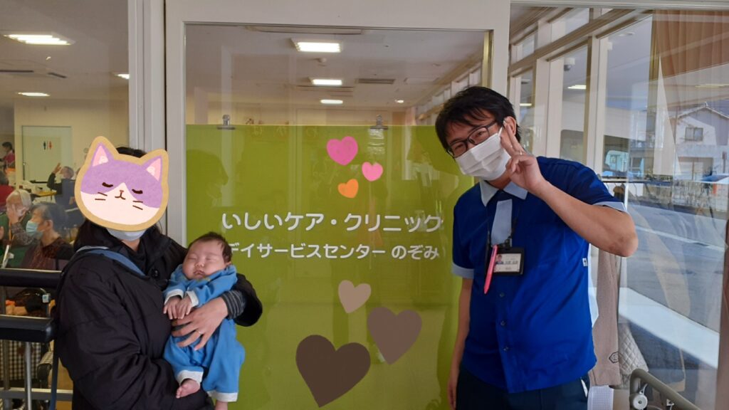本日、のぞみに矢野さんの奥様と赤ちゃんがデイサービスに来てくださいました😆