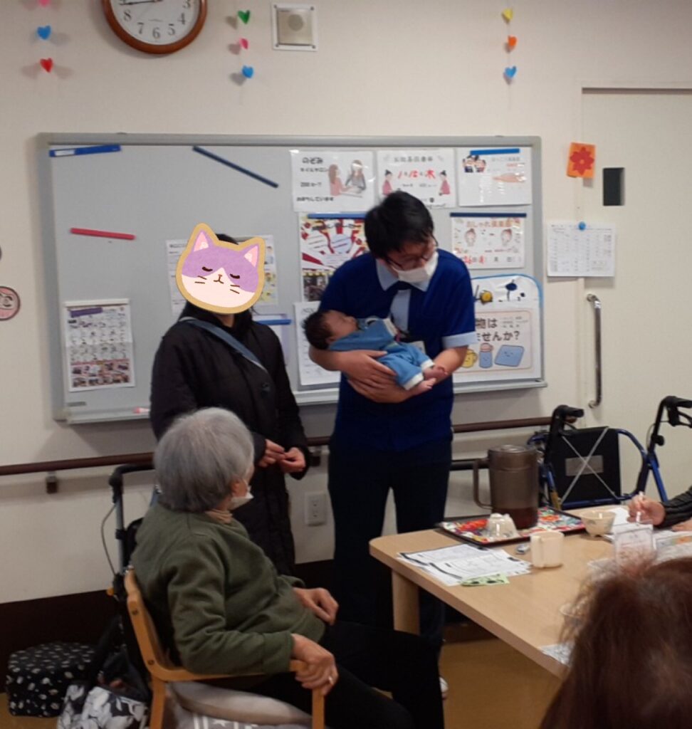 昨年末に誕生され、生後1ヶ月、ご利用者様と職員たちにお披露目です🤩