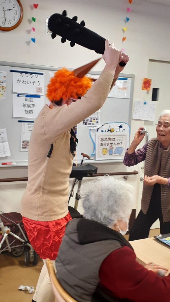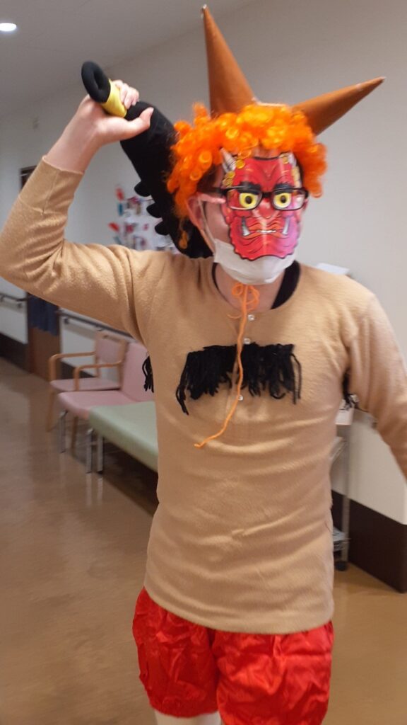 ご利用者様、大きな声で鬼に豆をぶつけていきます😠