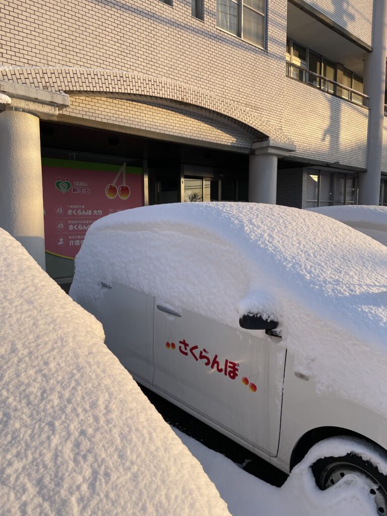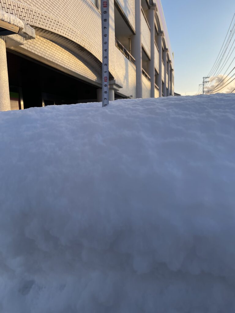 職場に到着後、ケアマネの必須アイテムのスケールを取り出し、社用車に降り積もった雪を計測してみました。なんと『16㎝!!』