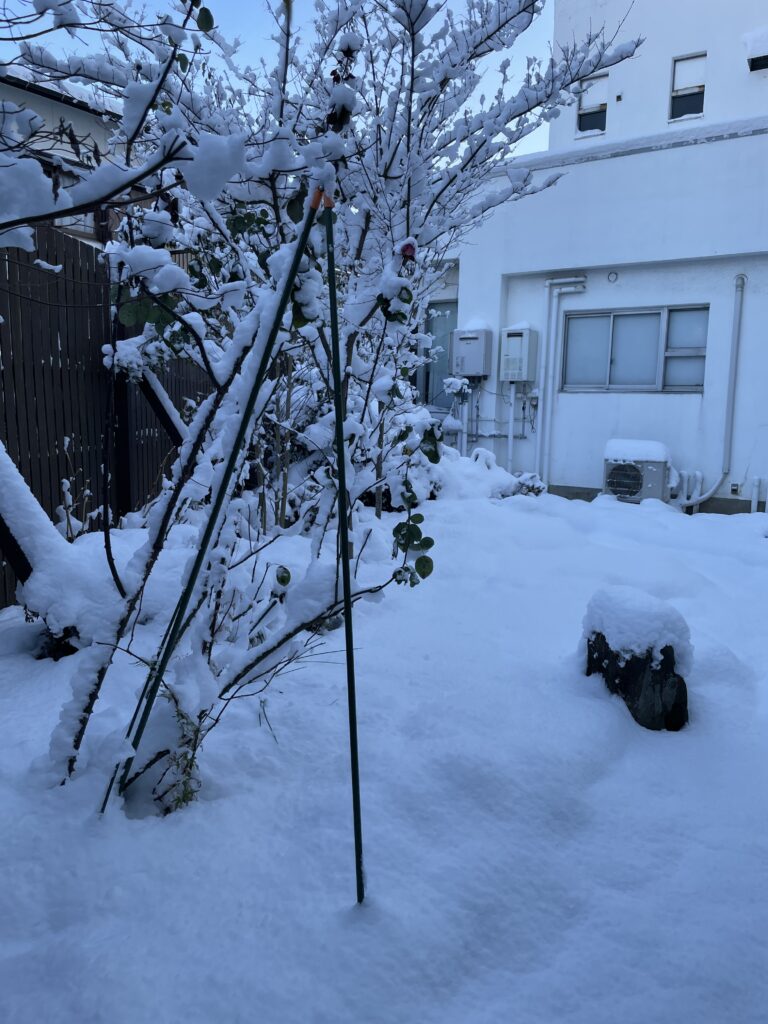 こちらは裏庭の風景です。寒い寒すぎる🥶風情はありますがすぐに事務所に戻りました。