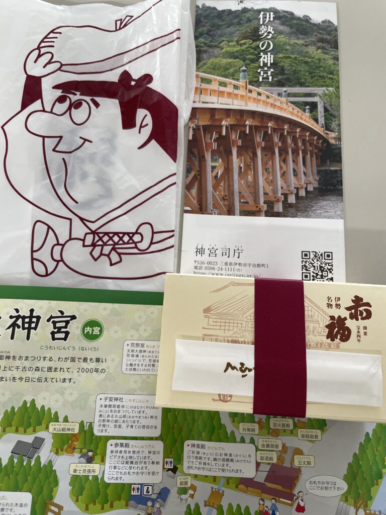 お土産話と共に名物の『赤福』をお土産にくれました。袋のキャラクターもかわいい😊