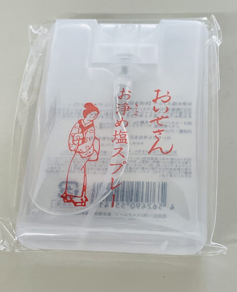 こちらの『お浄め塩スプレー』は人気でインターネット通販でも購入できるそうですが、商品名の文字がオレンジ色は伊勢の本店でないと購入できないとの事です。
