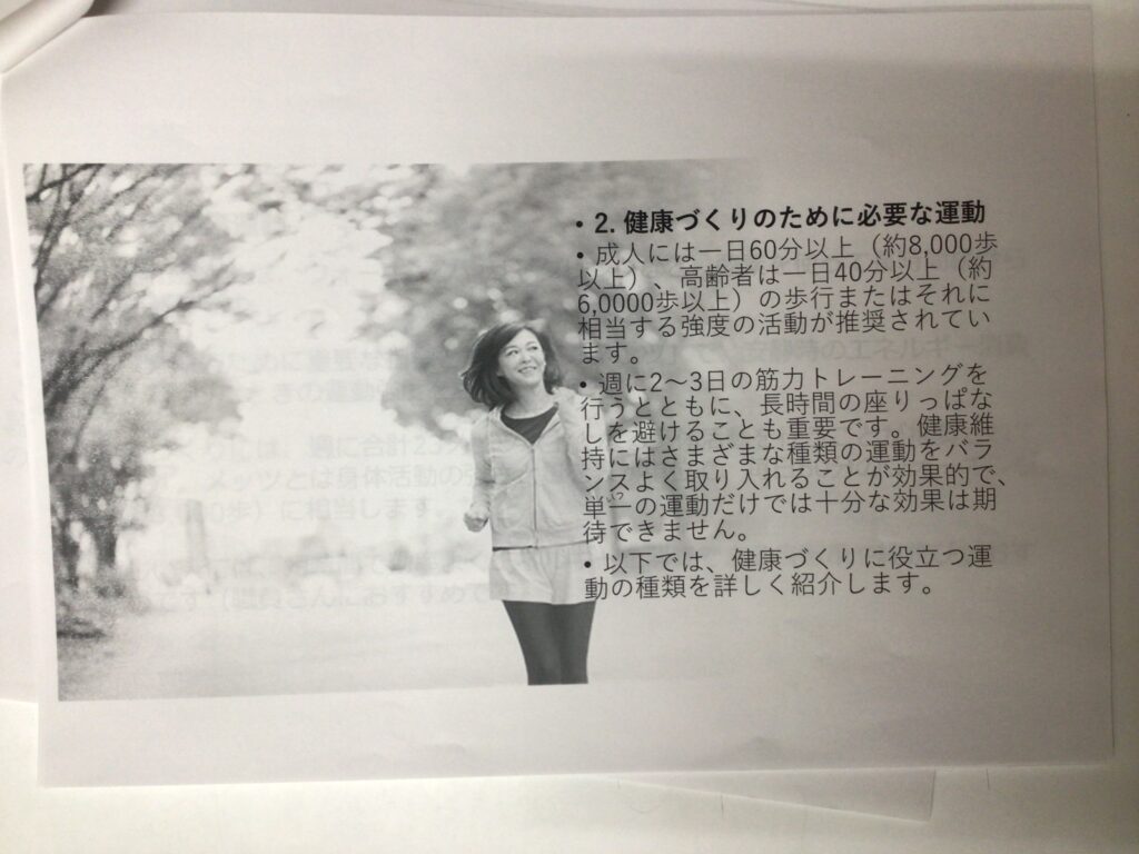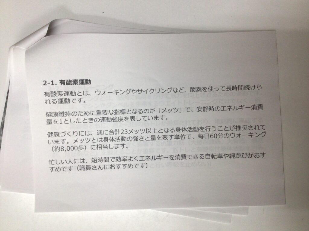 ただ体を動かすだけではなく、これらに期待できる効果や目的、実践方法について学びました。